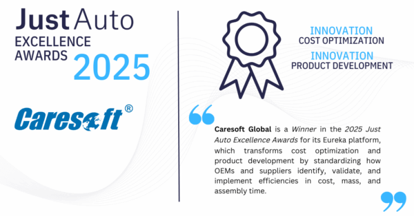 Caresoft Global has been honored with two Innovation Awards at the 2025 Just Auto Excellence Awards, recognizing the impact of Eureka, its patent pending platform designed to reduce material cost, vehicle weight, and assembly time across automotive programs.